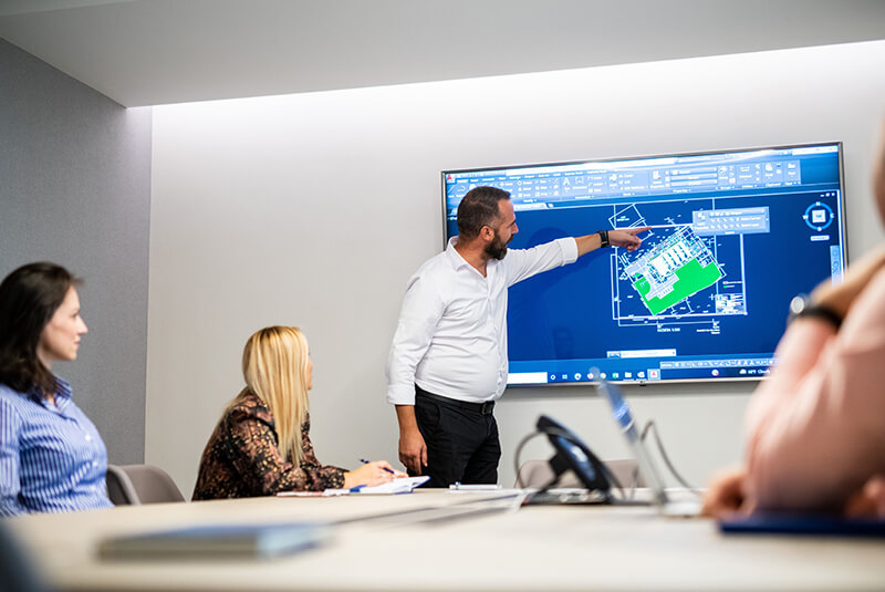 Naš tim čine diplomirani inženjeri građevine (licence IKS 410 i 310), diplomirani inženjeri arhitekture (licence IKS 400 i 300), diplomirani ekonomisti, diplomirani politikolog za međunarodne poslove, arhitektonski tehničari, elektrotehničari, armirači, tesari, zidari.